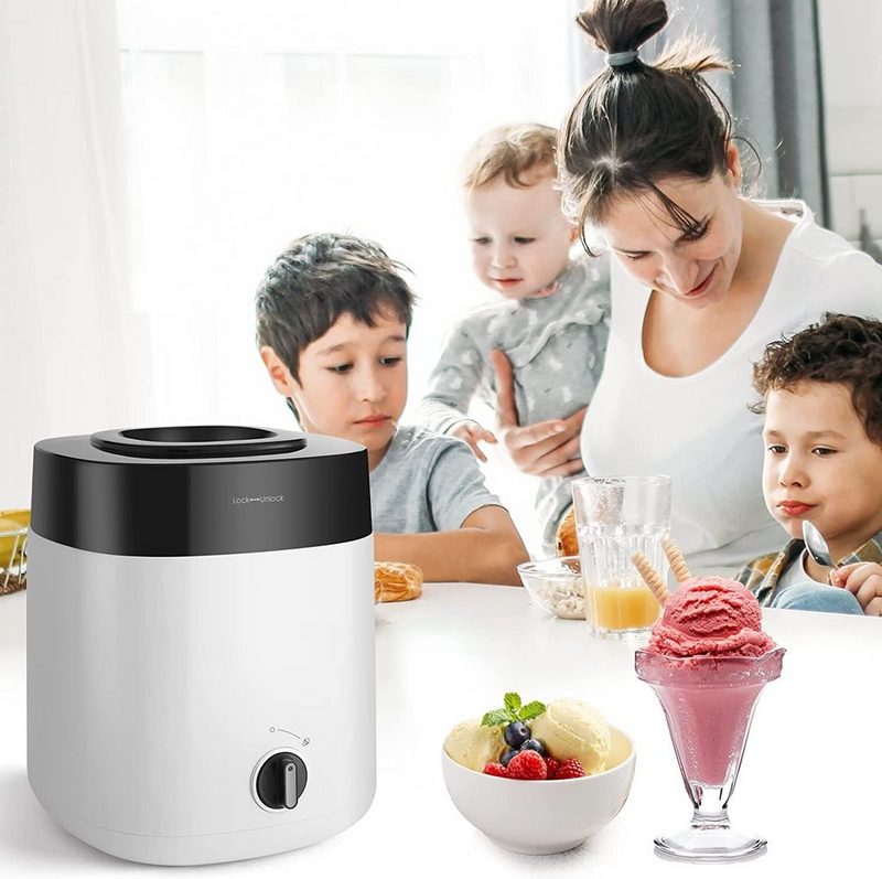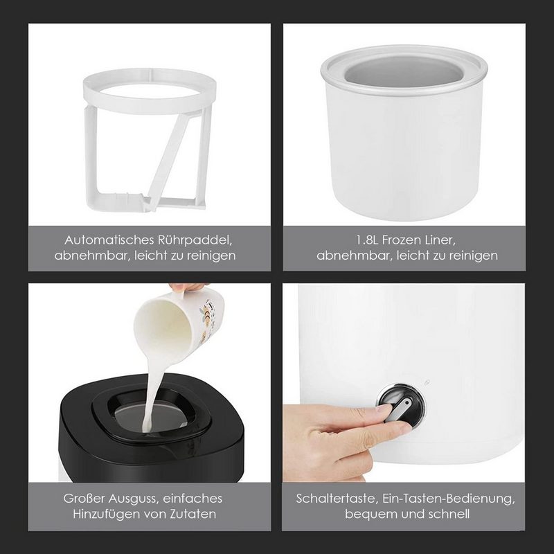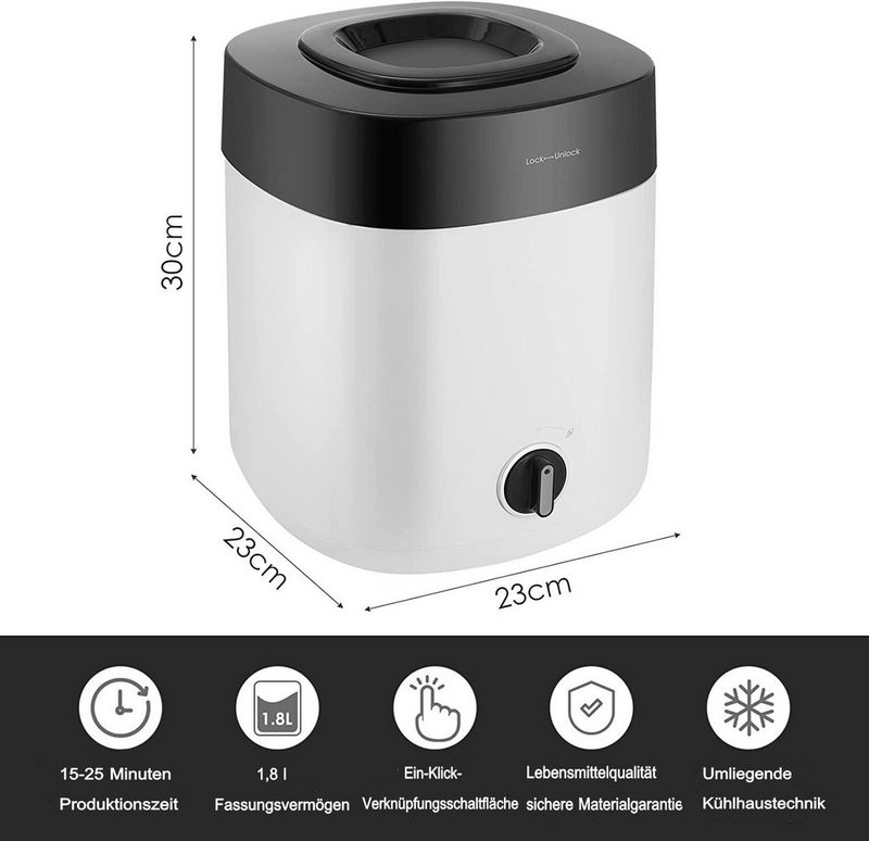 MVPower Eismaschine 200 l 1800 W fertiges Dessert in 15-25 Minuten Speiseeisbereiter aus Plastik 2L Eiscremebereiter Ein-Tasten-Bedienung 23*23*30 cm Einfaches Hinzufügen von Zutaten