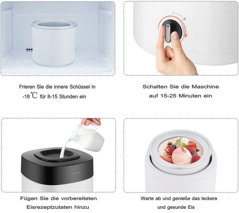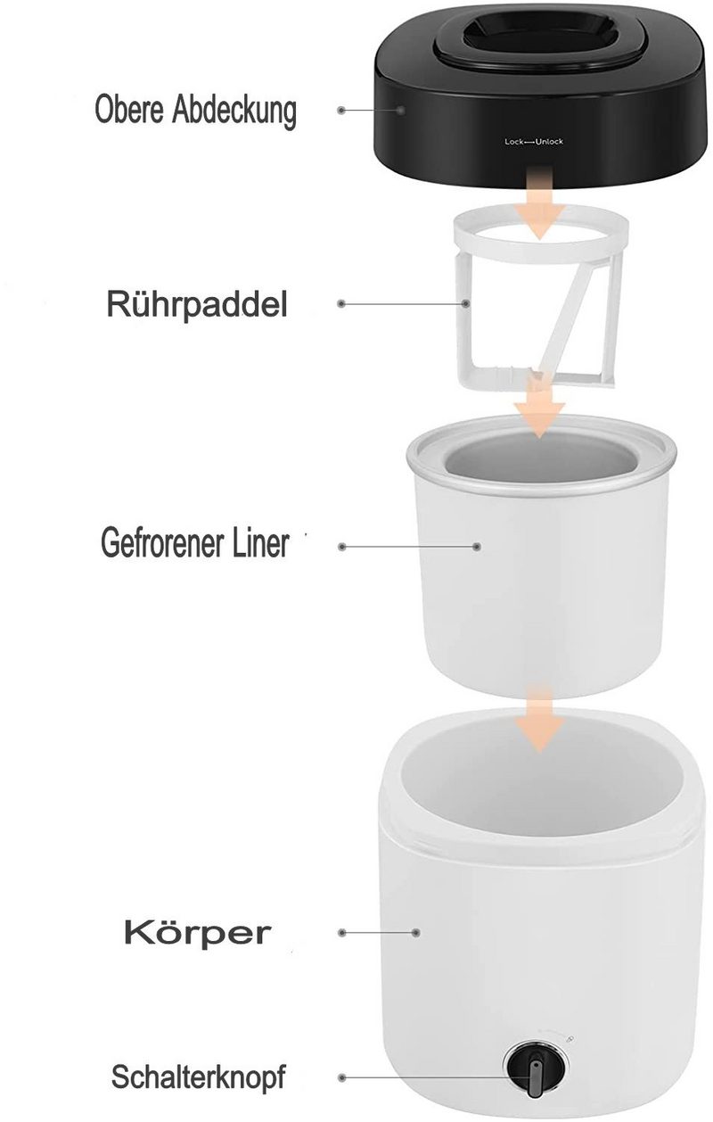 Pflegehinweise Vermeiden Sie es, die gefrorene Schüssel vollständig mit der Mischung zu füllen. Lassen Sie während des Mischvorgangs mindestens 4 cm vom oberen Rand der Folie bis zur Gefrierschale, damit sich die Mischung ausdehnen kann. Als Referenz sollte die Eismischung 700 ml nicht überschreiten. Das Eis quillt jedoch nicht zu stark auf, sodass die Mischung 800 ml erreichen kann.
