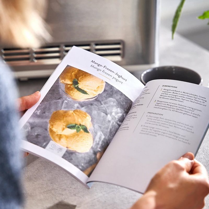 Rezepte – bekommst du direkt dazu! Ob Grundrezept für selbstgemachten Joghurt, fruchtiges Sorbet oder schnelles Joghurtdressing – im beiliegenden Rezeptheft findest du leckere Ideen zum Nachmachen mit Elisa.