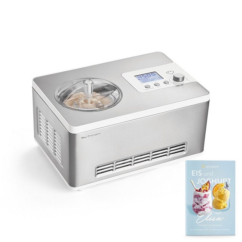 Springlane Eismaschine Elisa 2 l 180 W Eismaschine mit Kompressor 2 l – Eiscrememaschine 180 Watt aus Edelstahl mit herausnehmbaren Eisbehälter & Joghurtbereiter – Eiscremebereiter selbstkühlend inklusive Rezeptheft