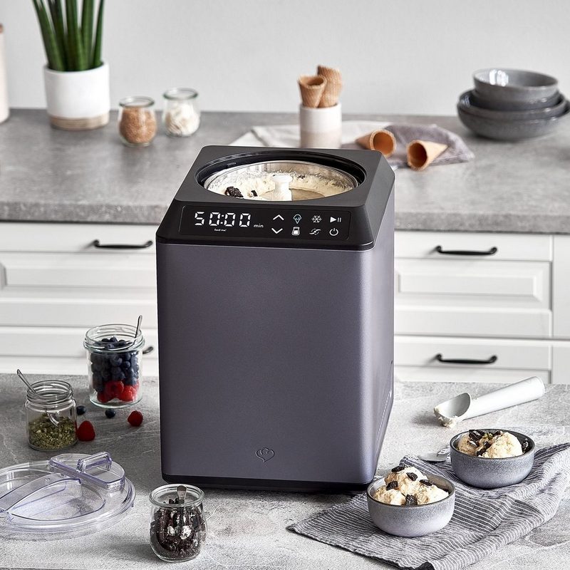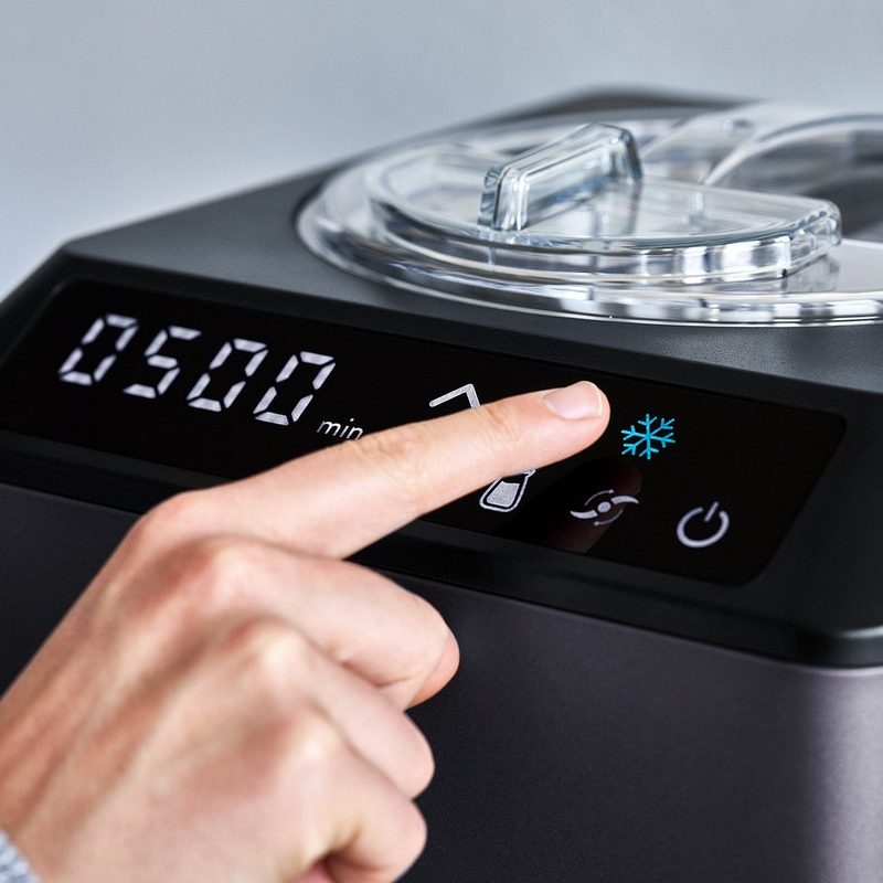 Erika ist cool und clever, sie verfügt nämlich über eine Vorkühlfunktion. Wozu das gut ist? Mit dem smarten Feature kreierst du die cremigsten Ergebnisse, seit es Eis gibt. Über das Touch Display kannst du darüber hinaus natürlich auch die bekannten Funktionen Eis, Joghurt und Rühren auswählen.