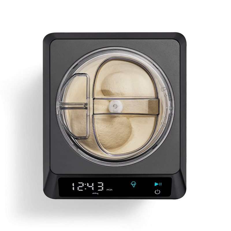 Dank des durchsichtigen Deckels inklusive Nachfüllklappe hast du immer alles im Griff und kannst deine Spezialitäten noch während des Rührens mit Nüssen, Früchten, Schokodrops, Cookie Dough und Co. verfeinern. Joghurt sollte jedoch erst nach der Zubereitung ein Upgrade erfahren.