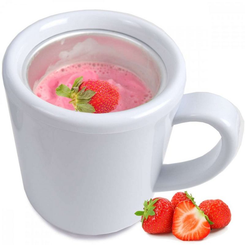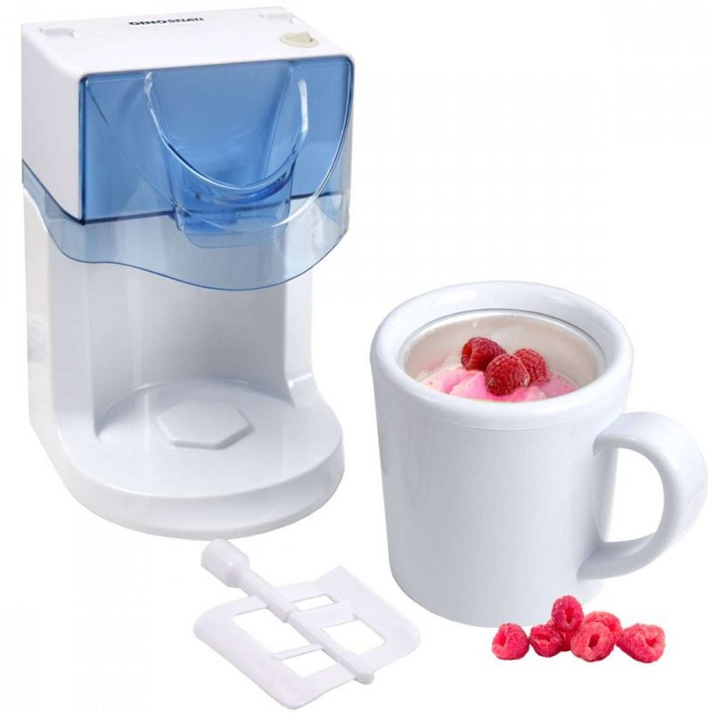 Mit dieser Eismaschine hat das Warten ein Ende. Das Turbo-Teil schafft Speiseeis in nur 20 Minuten Genau 0,5 Liter Eiscreme fasst die mit gelieferte leicht zu reinigende tasse. Neben Sahne-Soft und Frucht-Eis können auch Sorbets, Frozen Joghurt und laktosefreie Eis-Spezialitäten mit dem Gerät hergestellt werden. Eine gute Nachricht für die wachsende Zahl der Menschen, die unter Laktose-Unverträglichkeit leiden.